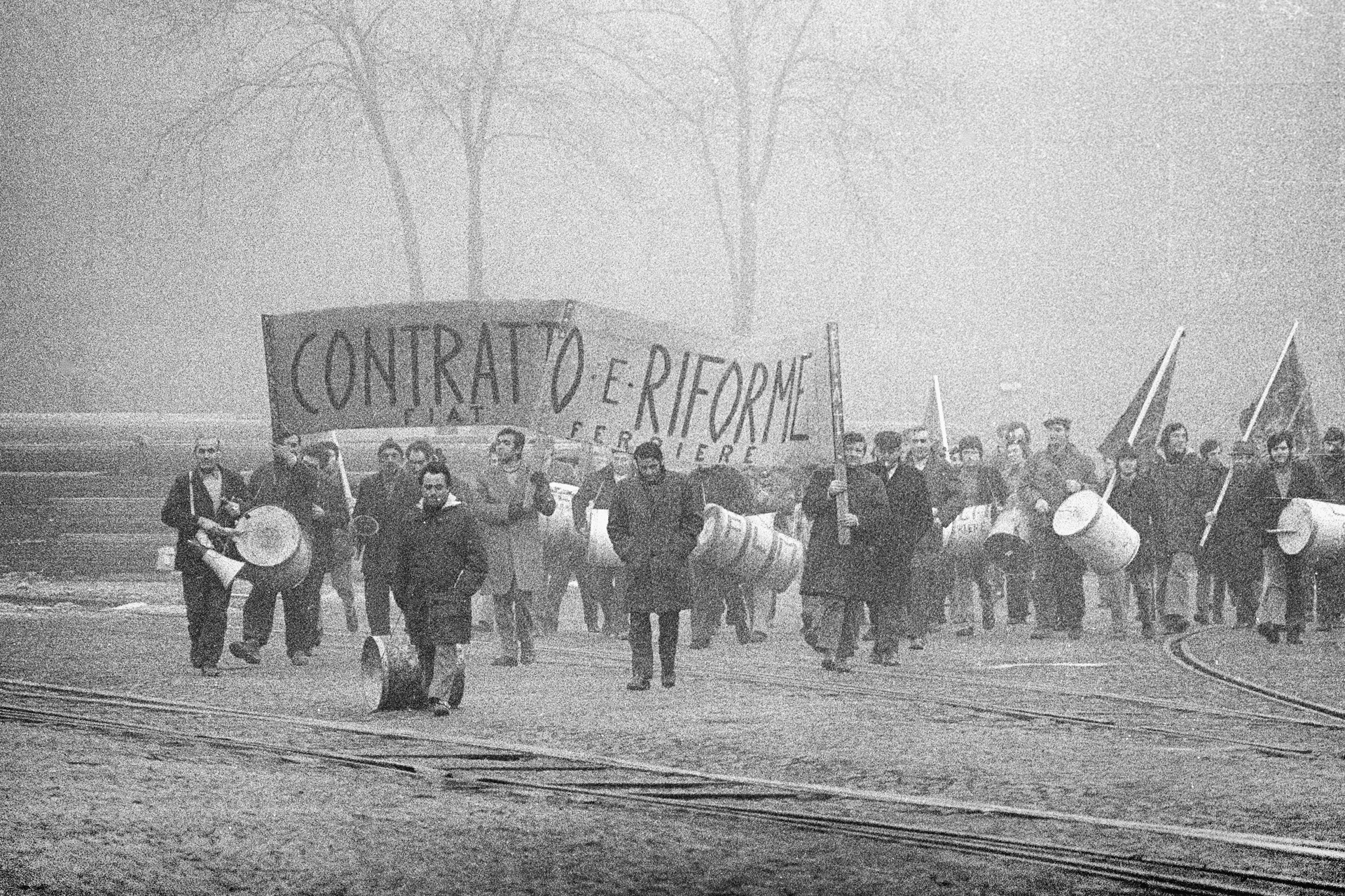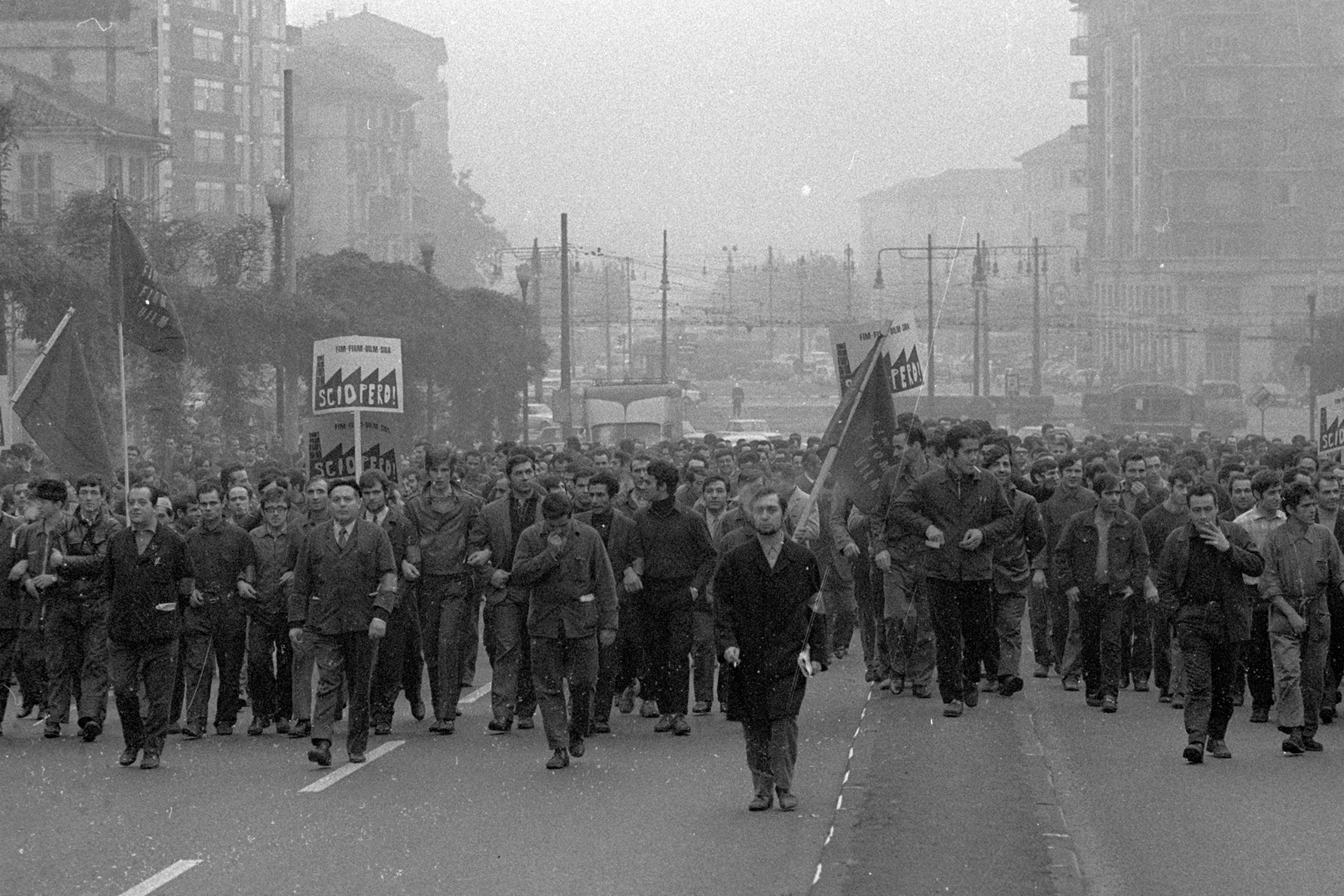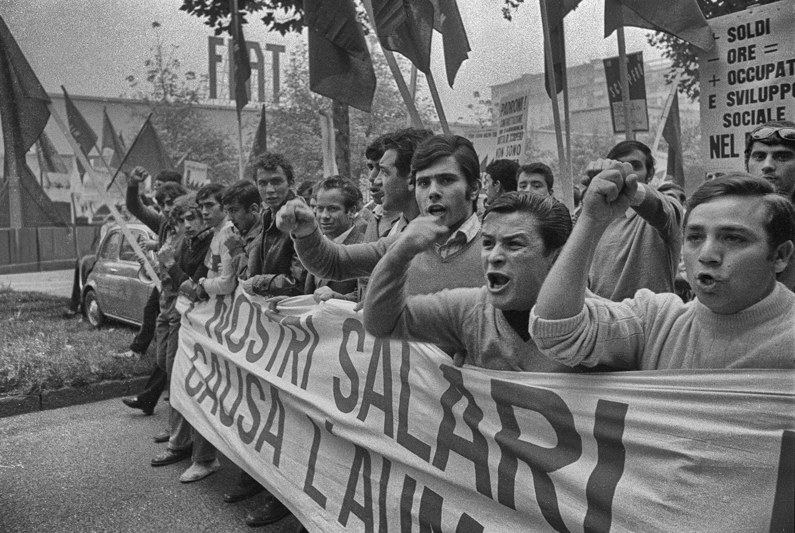 The workers’ struggles and mass demonstrations of Italy’s “Hot Autumn” and the broader labor movements of the 1970s. Strikes, factory assemblies, and street protests led by metalworkers and trade unions marked a turning point in Italian society, giving voice to demands for better wages, rights, and dignity in the workplace. Figures like union leader Luciano Lama, the mobilization at FIAT Mirafiori, and the imagery of occupied factories illustrate a decade of intense social conflict and collective action that reshaped labor relations and left a lasting mark on the country’s political landscape.