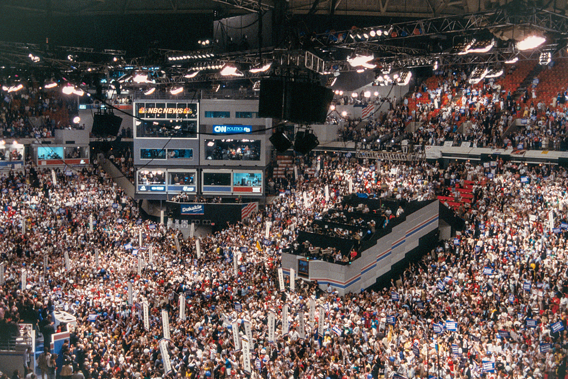Inside the vibrant and dramatic world of American politics during the Democratic primaries and conventions, alongside glimpses of George H. W. Bush on the campaign trail. From the energy of mass rallies to intimate moments with voters, these images capture the passion, spectacle, and contradictions of U.S. democracy in the making.